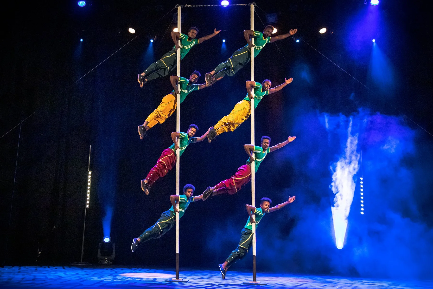 Circus Abyssinia: Ethiopian Dreams features dazzling acrobatics, impressive juggling performances, and gravity-defying stunts, infused with the vibrant rhythms of Ethiopian music. The story is about two brothers, Mehari "Bibi" Tesfamariam and Binyam "Bichu" Shimellis. It follows Little Bibi and Little Bichu as they dream of joining the circus. With dreams of joining the circus and no circus tradition in Ethiopia, they are following their dreams, making them come true, and creating a high-flying, bona fide Ethiopian circus with feats of acrobatic skill! The 70-minute performance is a condensed version of what you might typically expect from a traveling circus, infused with a unique, hybrid flair. Nor is it comparable to what you would see from the Jessie White Tumblers, a team of acrobats founded in 1959 by Illinois athlete and politician Jesse White. It's more like a beginner's circus soleil. Still, it is bursting with energy, offering an experience filled with delightful amazement that will captivate both children and adults alike; a joyful celebration for everyone in attendance.